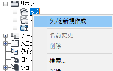 [タブを新規作成]という名前の新しいリボン タブが[タブ]ノードの一番下に表示されます。