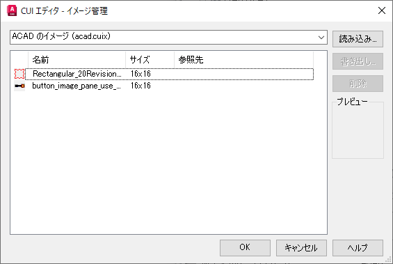 イメージがイメージ一覧と作業カスタマイズ ファイルに追加され、コマンドに割り当てることができるようになります。