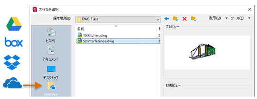 クラウド ストレージ プロバイダのアカウントを持っている場合は、そのアカウントを AutoCAD のファイル選択ダイアログ ボックスの場所バーに追加して、クラウド ストレージ アカウントの図面に直接アクセスすることができます。場所バー内で右クリックし、ナビゲーション ショートカットの名前とパスを入力するだけです。