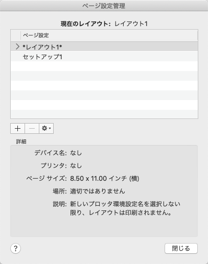 現在のレイアウトに適用できるページ設定が一覧表示されます。