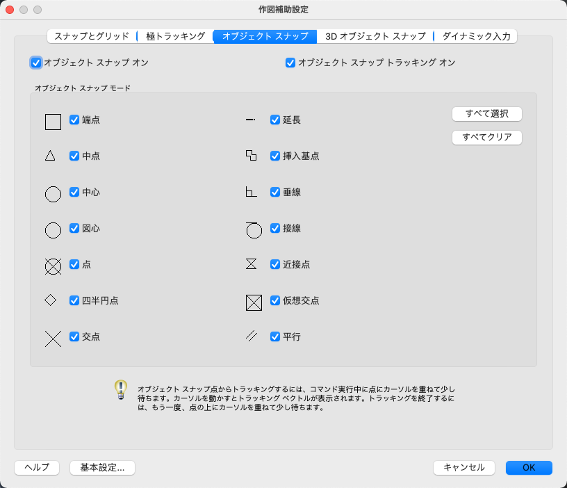 [オブジェクト スナップ]タブ([作図補助設定]ダイアログ ボックス)
