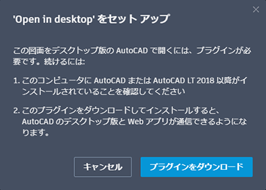 [デスクトップで開く]を使用するには、最初に AutoCAD プラグインをインストールする必要があります。