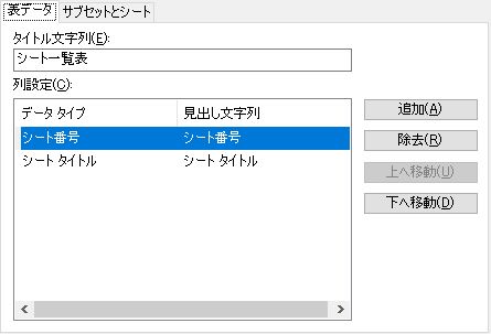 シート一覧表の列それぞれのタイトル文字を変更できます。