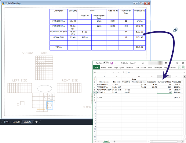 行や列を追加するなどして、リンクしたスプレッドシートを変更した場合は、DATALINKUPDATE[データリンク更新]コマンドを使用して図面内の表を更新できます。同様に、図面内の表を変更した場合は、同じコマンドを使用して、リンクしたスプレッドシートを更新できます。