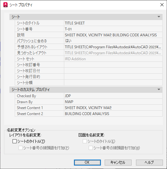 SHEETSET[シート セット マネージャ] (コマンド) 検索: シート セット内のシートを右クリック > [プロパティ]