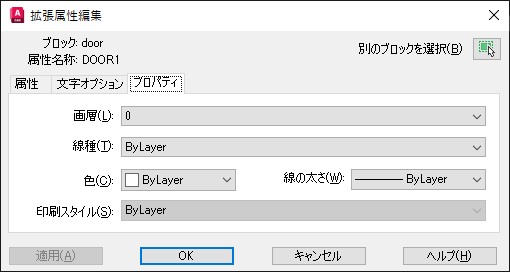 属性を配置する画層と、属性文字の線の太さ、線種、色を定義します。名前の付いた印刷スタイルを使用する図面の場合は、[プロパティ]タブを使用して属性に印刷スタイルを割り当てることができます。