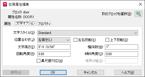 属性文字の文字スタイルを指定します。この文字スタイルの既定値が、このダイアログ ボックスに表示されている文字プロパティに割り当てられます。