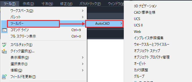 をクリックし、必要なツールバーを選択します。