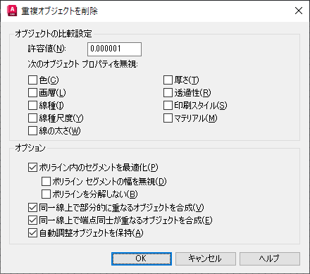 OVERKILL[重複オブジェクト削除] (コマンド) 検索