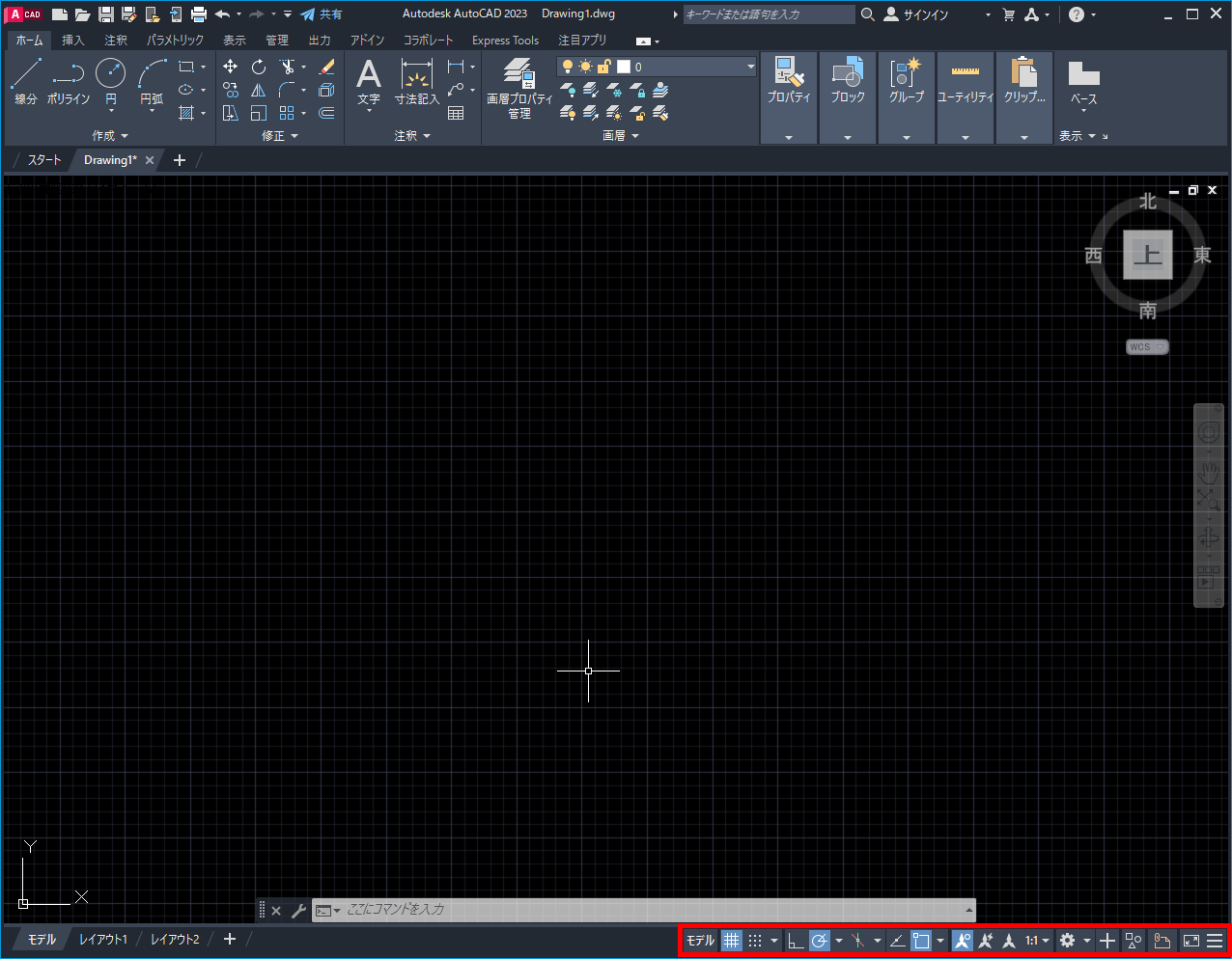 ステータス バーには、カーソルの位置、作図ツール、および作図環境に影響を与えるツールが表示されます。