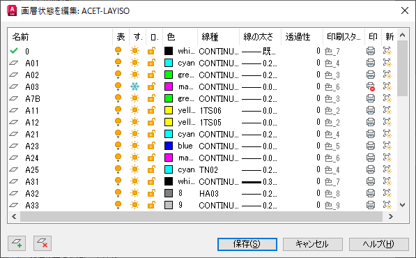LAYER[画層管理] (コマンド) 検索: [画層状態管理] > [編集]
