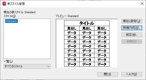 TABLESTYLE[表スタイル管理] (コマンド) 検索