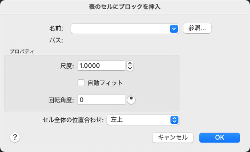 ブロック参照の尺度を指定します。値を入力するか、または選択したセルに合わせてブロックの尺度を設定するには、[自動フィット]チェック ボックスをオンにします。