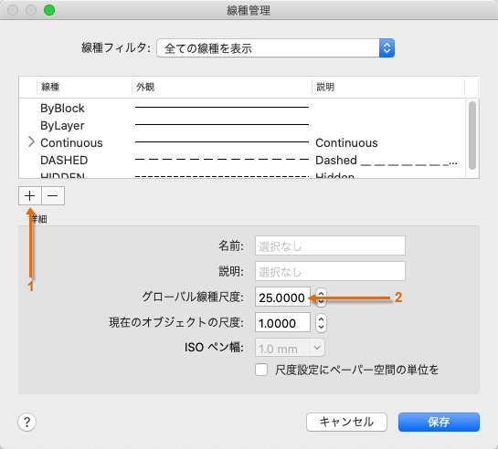 [形式]メニューから、[線種]をクリックします。これにより、[線種管理]ダイアログ ボックスが表示されます。