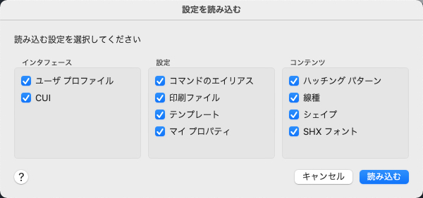 AutoCAD for Mac でカスタム設定を読み込む