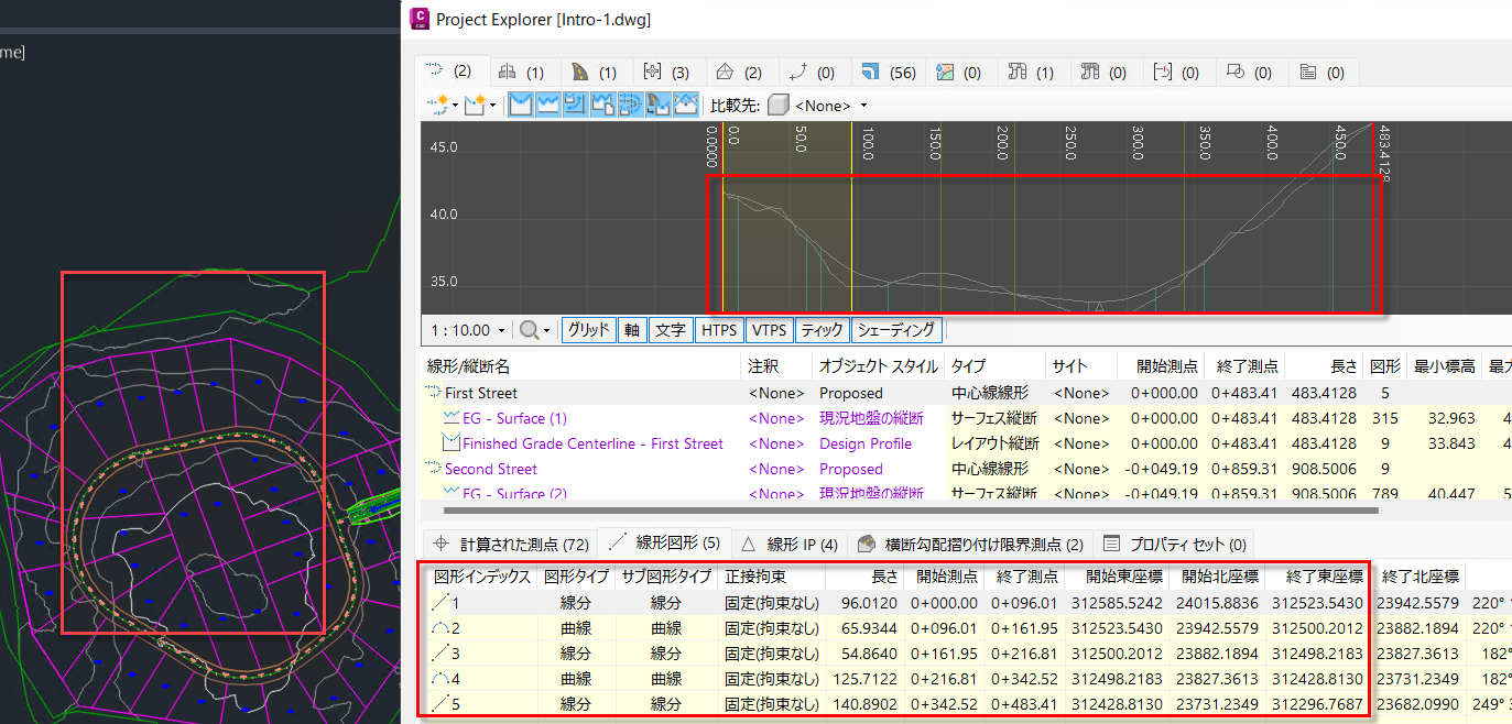 | [A] (または[E]) | 選択した任意のオブジェクトの[Civil 3D プロパティ]ダイアログを開きます。 |