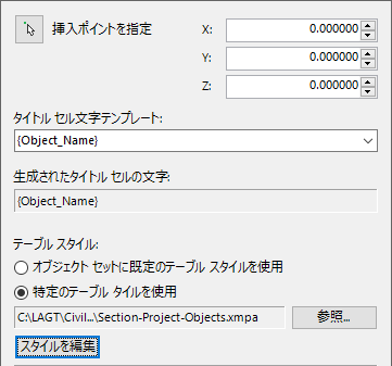 このオプションを使用して、各オブジェクト セットによって作成される AutoCAD テーブルの左上隅の位置を決定します。位置は、ウィンドウに XY 座標を入力するか、AutoCAD ビューポートでポイントを選択することで指定できます。