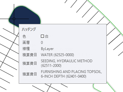 ツールチップに、そのオブジェクトに割り当てられている積算費目の説明と ID が表示されます。