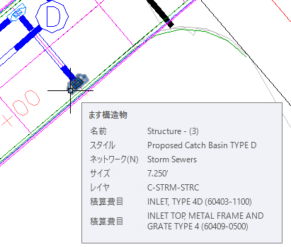 ツールチップに、その排水ますに割り当てられている積算費目の説明と ID が表示されます。