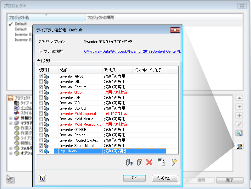 ライブラリ コンテンツのごく一部しか使用しない場合は、必要なファミリをカスタムのライブラリにコピーしてプロジェクト設定の中でのみロードすることを検討してください。
