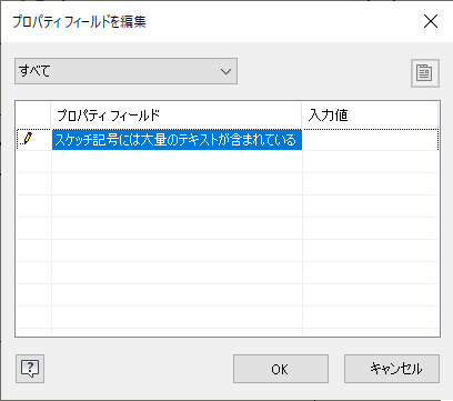 プロンプト入力を含むスケッチ記号、表題欄、または図面枠を挿入するときに、[プロパティ フィールドを編集]ダイアログ ボックスの[プロパティ]フィールドと[値]フィールドが、最も長い文字列に自動的に拡張されるようになりました。