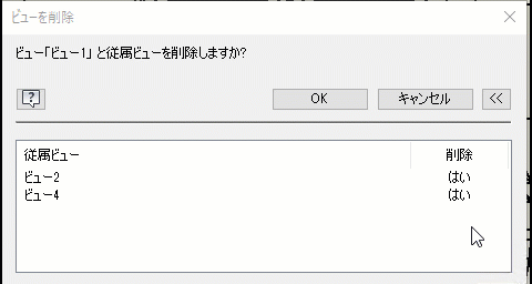 従属ビューを含むビューを削除すると、既定で[ビューを削除]ダイアログ ボックスに従属ビューが表示されるようになりました。これにより、従属ビューが保持または削除されることがわかりやすくなります。既定では、各従属ビューは削除するよう[はい]に設定されています。設定を変更するには、[削除]エントリをクリックします。以前は、この情報を表示して変更するには、拡張ボタン
