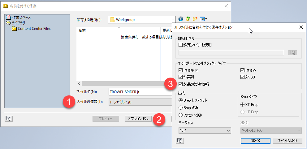 オプションを選択することにより、JT および STEP 形式でアセンブリをエクスポートするときにパーツ ドキュメントの PMI を含めることができます。