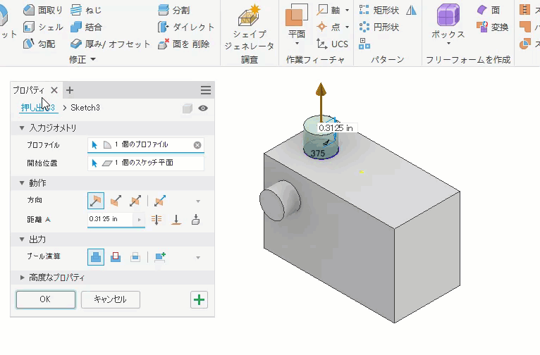 値編集コントロールと HUD: フィーチャ寸法を選択した後で、カーソルはフィールドの末尾に配置されます。式または計算式の作成のサポートが改善されました。