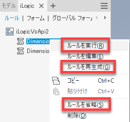 iLogic ルールのショートカット キーを右クリック メニューで使用できるようになりました。一覧からルールを選択して右クリックし、ショートカット キーで目的の操作を実行します。次のショートカット キーを使用できます。