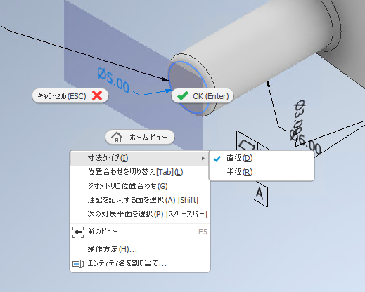 3D 注記を作成または編集するときに、直径寸法を半径寸法に変更したり、半径寸法を直径寸法に変更することができます。同じタイプの寸法を複数選択して、1 回の操作で変更することができます。
