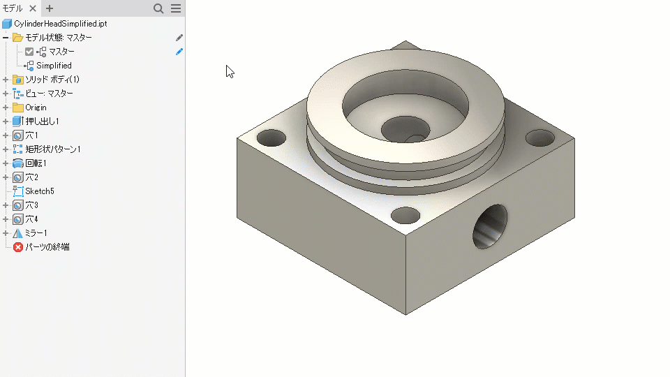 パーツのモデル状態を使用して、製造プロセスのキャプチャ、パーツ ファミリの作成、調整可能なパーツとフレキシブルなパーツの作成、パーツの簡略化バージョンの作成を行うことができます。