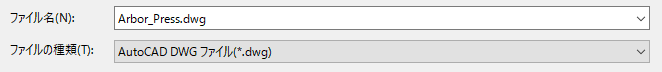 [DWG ファイルにエクスポート]を選択すると、[ファイルの種類]の既定値が[Inventor 図面ファイル(.dwg)]から[AutoCAD DWG ファイル(.dwg)]に変更されます。