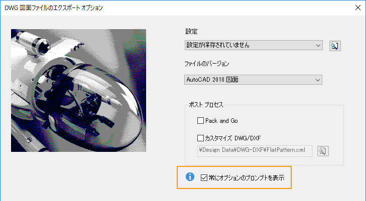 ファイルをエクスポートして AutoCAD 図面として保存するワークフローが、次に示すように合理化されています。
