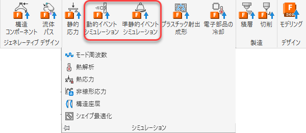 Inventor から Fusion 360 へのツールのワークフローを改善するために、イベント シミュレーションは動的と準静的の 2 つのタイプに分かれています。
