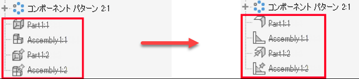 アセンブリ内の省略されたシート メタルおよび溶接パーツのアイコンを修正する