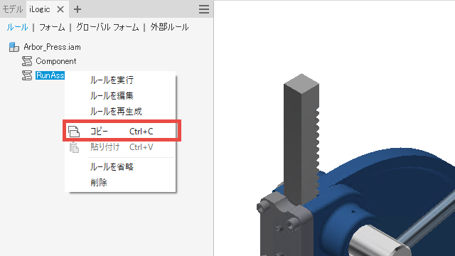 iLogic ブラウザ内でルールをコピーして貼り付ける