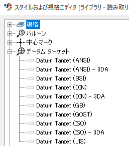 3D の[一般注記]および[スタイル]に[データム ターゲット]コマンドが追加されました。