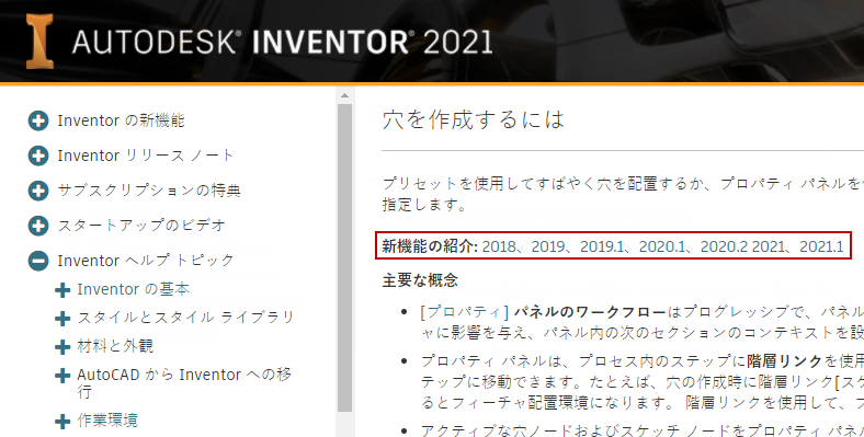 また、[F1]を使用してヘルプ ページに移動すると、該当する場合は機能またはコマンドの変更について説明する「新機能の紹介」トピックへのリンクがページの上部に表示されます。