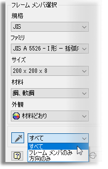 メンバの挿入および変更コマンドを使用するときに、既存のフレーム メンバから情報をコピーできるようになりました。ダイアログのスポイトを選択して、コピー プロパティを有効にしてから、メンバを選択します。[フレーム メンバのみ]、[方向のみ]、または両方の情報をコピーすることを選択できます。