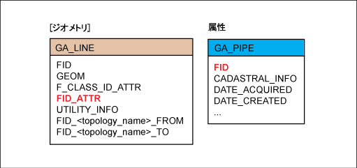 ガス データ モデル: 管とライン フィーチャ クラスとの関連