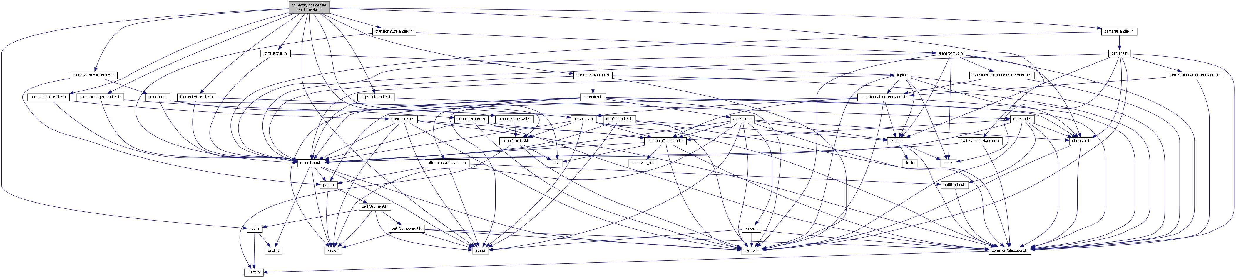#include "attributesHandler.h"#include "contextOpsHandler.h"#include "hierarchyHandler.h"#include "object3dHandler.h"#include "sceneItemOpsHandler.h"#include "sceneSegmentHandler.h"#include "transform3dHandler.h"#include "uiInfoHandler.h"#include "cameraHandler.h"#include "lightHandler.h"#include "pathMappingHandler.h"#include "rtid.h"#include <list>#include <string>