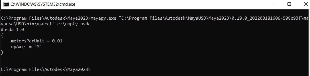 mayapy, so UsdView will run withmayapy.To run with Python 2, usemayapy2(instead of "mayapy") and change toUSD2(from “USD3”). UsdView is accessible for other versions of Maya. However, Maya 2022 provided dual support for python 2 and python 3.