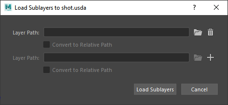 stage or stageShape and select USD Layer EditorTo bring up the Load Sublayers to