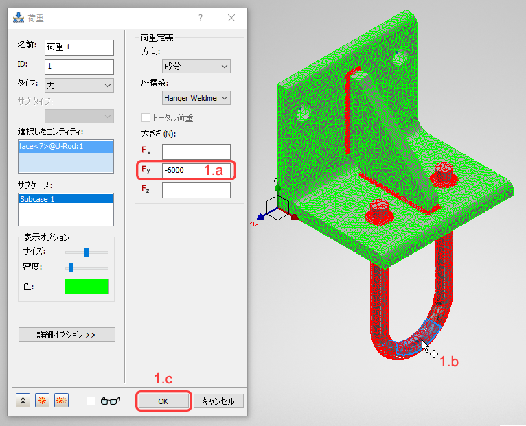 - [OK]をクリックして荷重を適用し、ダイアログ ボックスを閉じます。
