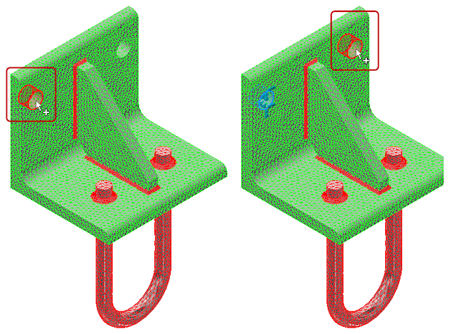 モデル キャンバスで、取り付け穴の内部サーフェスをそれぞれクリックして選択します。