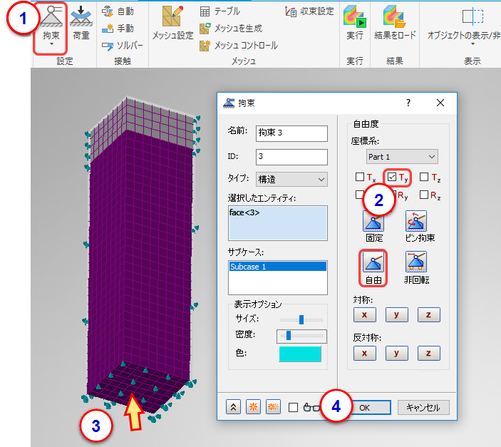 この手順では、XY 平面で Z 対称を対称エッジに割り当てます。