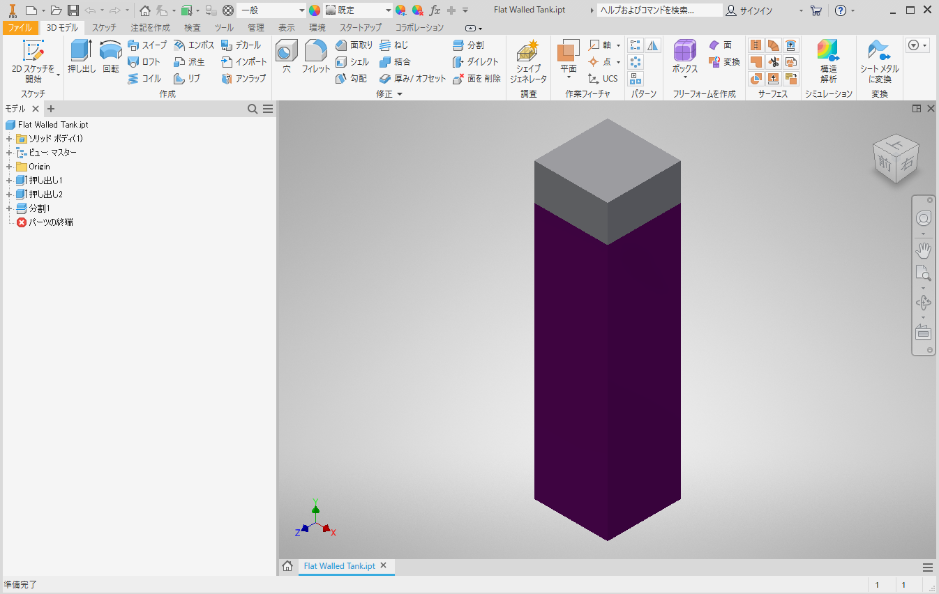 Flat Walled Tank.ipt をトレーニング演習フォルダの