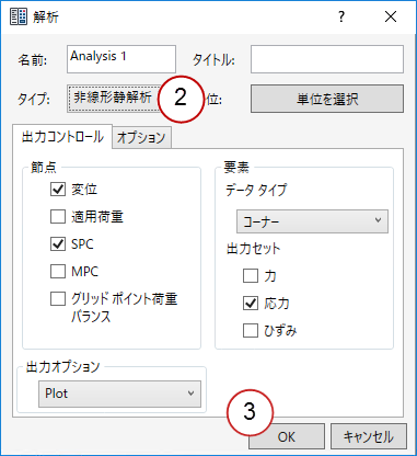 9. 解析タイプを非線形静解析に変更して、再実行する