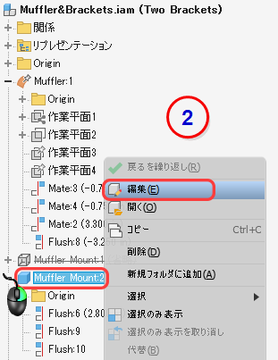Autodesk Inventor を起動し、Muffler&Brackets.iam をトレーニング演習フォルダの Section 23 - Muffler - Modal Avoidance サブフォルダから開きます。