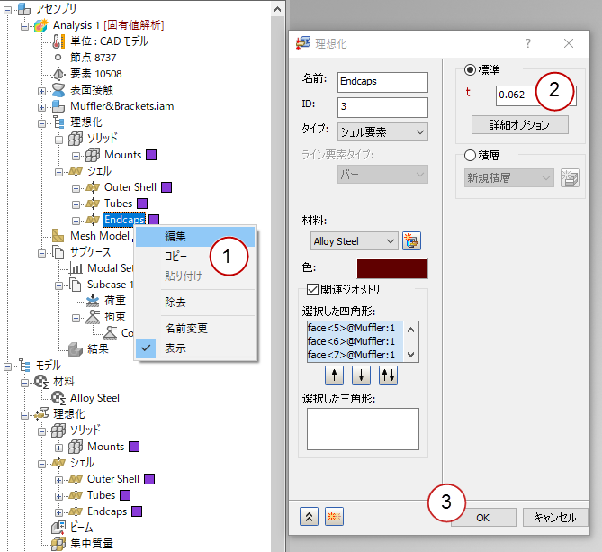 Inventor Nastran に戻ります([環境]、Autodesk Inventor Nastranの順にクリックします)。